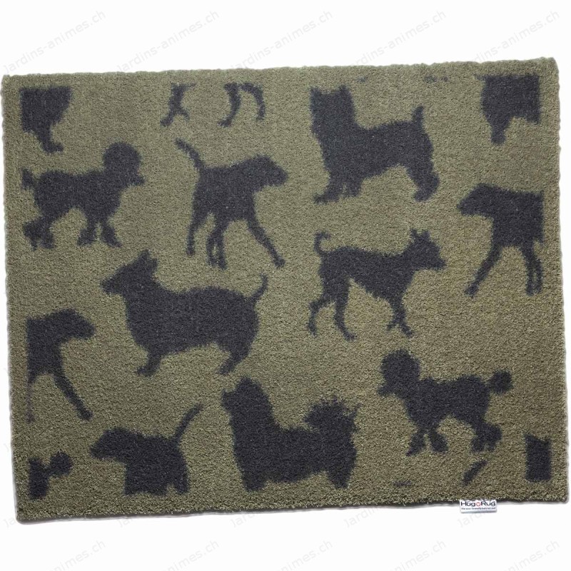 - Tapis au motif de chiens couleur charbon, sur fond beige.